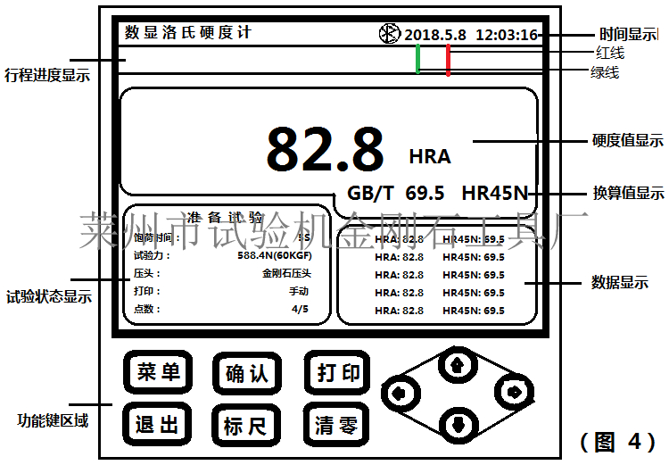 近年來,由于數(shù)顯洛氏硬度計(jì)測(cè)試精度高、無人為讀數(shù)誤差等優(yōu)點(diǎn),越來越受到企業(yè)用戶的青睞,我廠生產(chǎn)的這款數(shù)顯洛氏硬度計(jì)較之以往市場(chǎng)的數(shù)顯洛氏硬度計(jì)的優(yōu)勢(shì)在于:1.采用高精度傳感器與精度萊金品牌金剛石壓頭(壓頭精度為標(biāo)準(zhǔn)級(jí)),確保儀器精度;2.可選配洛氏的其他標(biāo)尺;3.內(nèi)置軟件可對(duì)儀器進(jìn)行±3HR的補(bǔ)償;4.可自動(dòng)轉(zhuǎn)化為其他標(biāo)尺硬度值?,F(xiàn)在就使用者較為關(guān)心的數(shù)顯洛氏硬度計(jì)屏幕主要功能鍵做下簡(jiǎn)單介紹,若有進(jìn)一步了解的客戶可致電萊州市試驗(yàn)機(jī)金剛石工具廠技術(shù)科:0535-2215886。